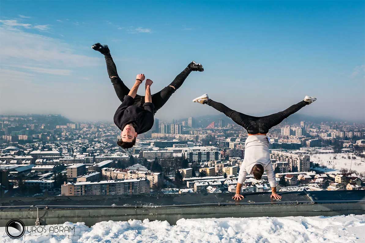 Kombinacija Free-runninga in Parkourja z ekspozivnimi elementi in dimaničnimi figurami zmeraj pusti gledalce odprtih ust.
